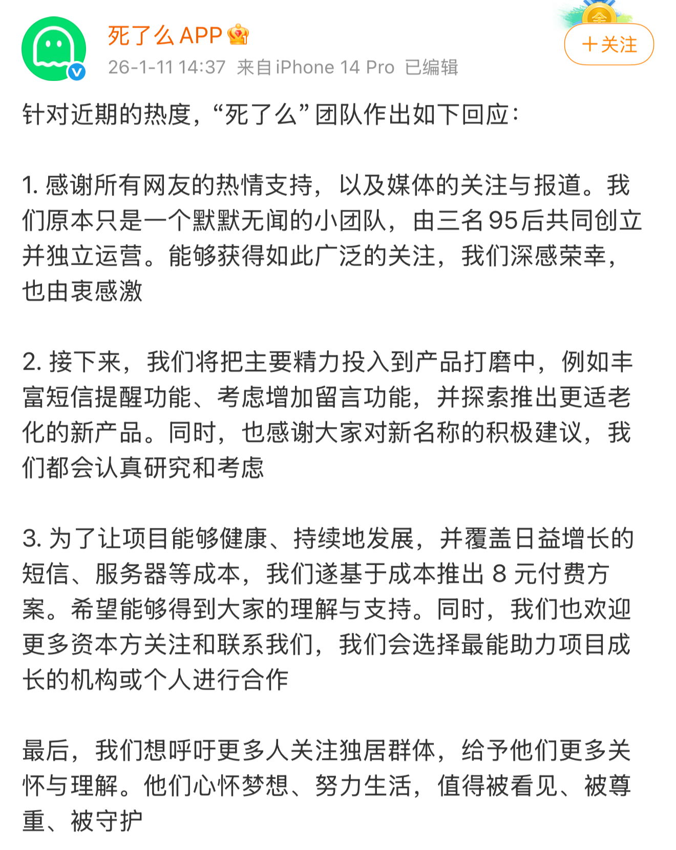 The company said that the fee increment was to sustain the project and cover growing costs such as SMS and server expenses, while taking the new name suggestions into consideration. The team added that they would focus on product refinement, such as expanding SMS reminders, considering a messaging feature, and exploring more elder-friendly products for the future.