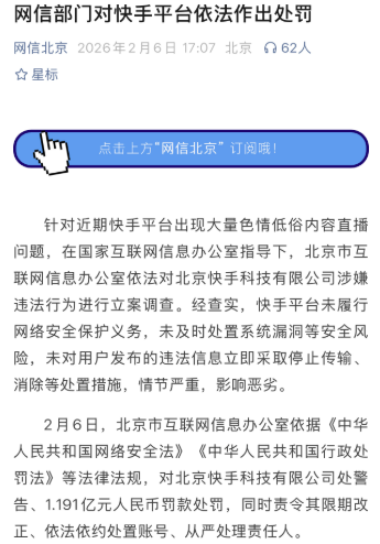 Upon investigation, it was found that Kuaishou failed to fulfill its cybersecurity protection obligations, did not promptly address system vulnerabilities and security risks, and failed to take immediate measures to stop the transmission or remove illegal content posted by users. The severity of these violations has had a seriously negative impact.