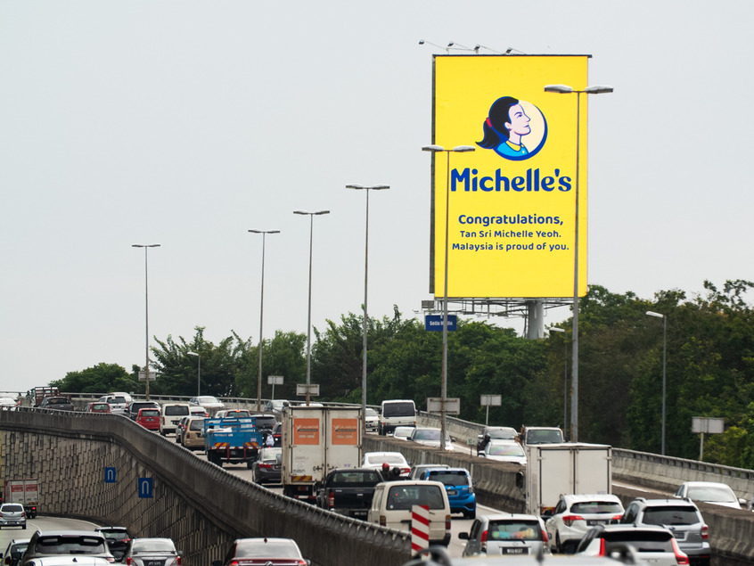 Malaysian biscuit manufacturing company Julie's Biscuits celebrated Malaysian actress Michelle Yeoh's historic Academy award win this year with a massive OOH billboard.