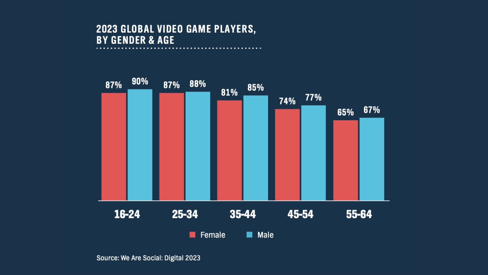 Marketers in South Korea and Japan believe gamers to be predominantly male and under 27 years old. According to global user studies, the demographic of an average mobile gamer is almost split equally between men and women.