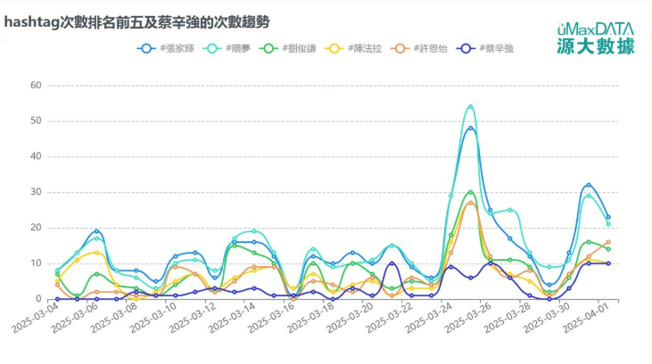 Hashtag activity peaked around the film’s premiere on 24 March, with #贖夢 and #張家輝 leading the conversation. Cast-related hashtags such as #劉俊謙 and #陳法拉 also surged, showing strong audience interest in both the film and its stars.