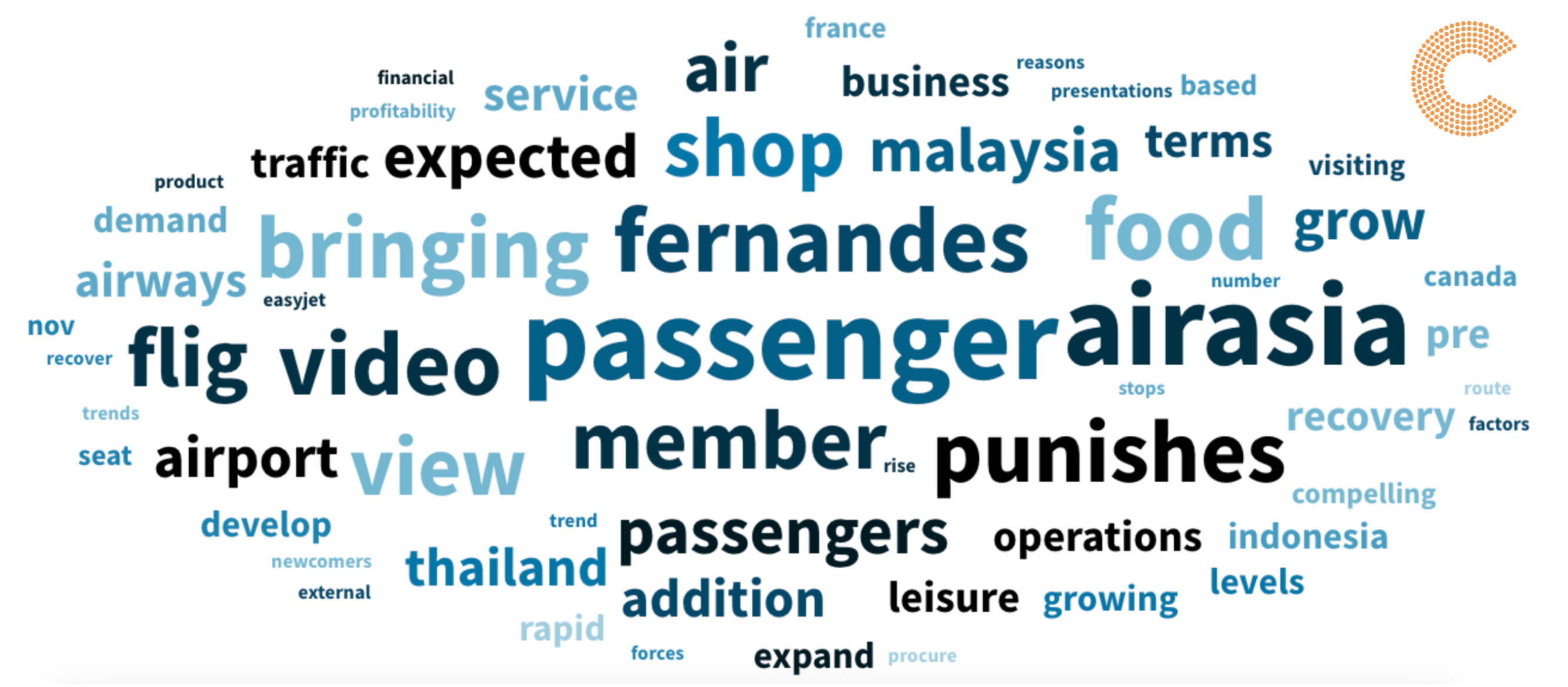 Many of the words associated with AirAsia also were to do with Fernandes and the situation with "passenger”, "video", “punishes” and “food” coming out on top.