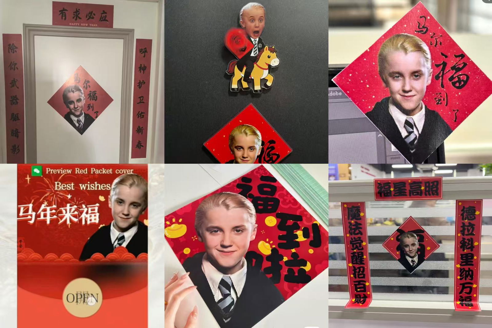 The phenomenon stems from his Mandarin name: Mǎ Ěr Fú (马尔福). The first character, Mǎ (马), directly translates to horse, whereas the final character, Fú (福 ), is one of the most important symbols of Chinese New Year, representing good fortune, happiness, and blessings. It is traditionally displayed on diamond-shaped red paper known as Fú Zì (福字).