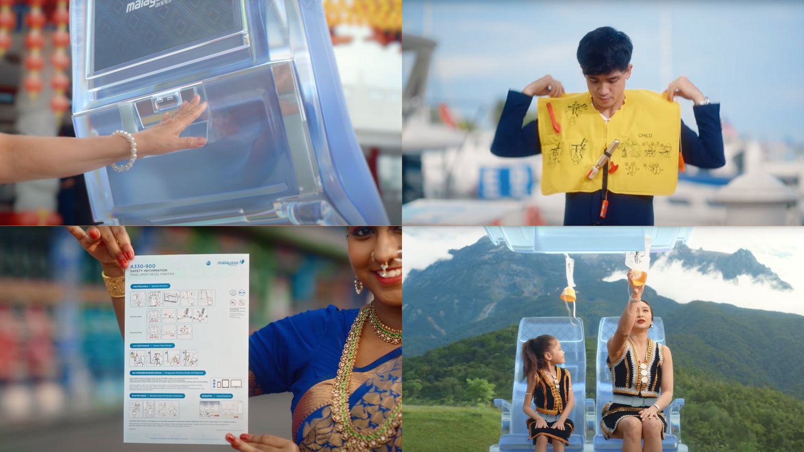 Set across landmarks in Kuala Lumpur, Putrajaya, and Sabah, Malaysia Airlines’ new inflight safety video blends safety instructions with cultural storytelling. It opens at the pink-domed Putra Mosque in Putrajaya, where a cabin crew member demonstrates luggage stowage and device rules alongside characters in traditional baju Melayu. The journey continues to Kuala Lumpur’s Thean Hou Temple for seatbelt demonstrations, Sutera Harbour in Sabah for life vest instructions, and Mount Kinabalu, where a woman and young girl in Kadazan attire show the use of oxygen masks.
