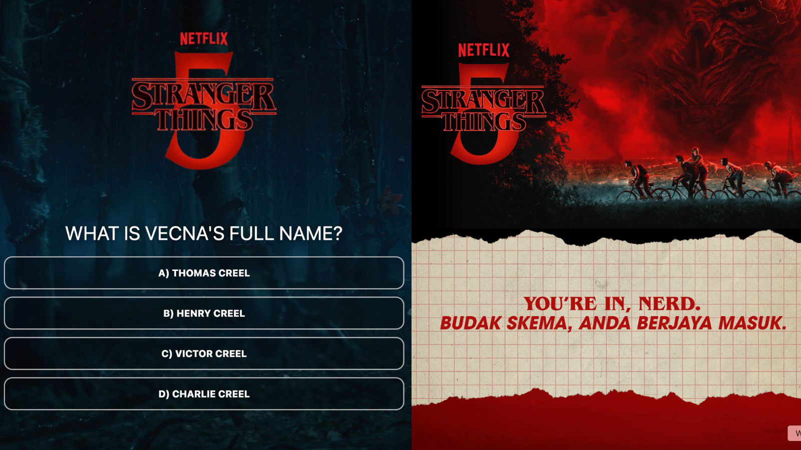 Upon visiting StrangerRides.my, visitors are welcomed by a landing page inviting them to join the fan event celebrating the final season of Stranger Things, featuring a nostalgic ride through the streets of Kuala Lumpur. Clicking on "Book your Stranger Ride here" leads fans to a short quiz, which must be completed before they can pre-book their spot for the experience.