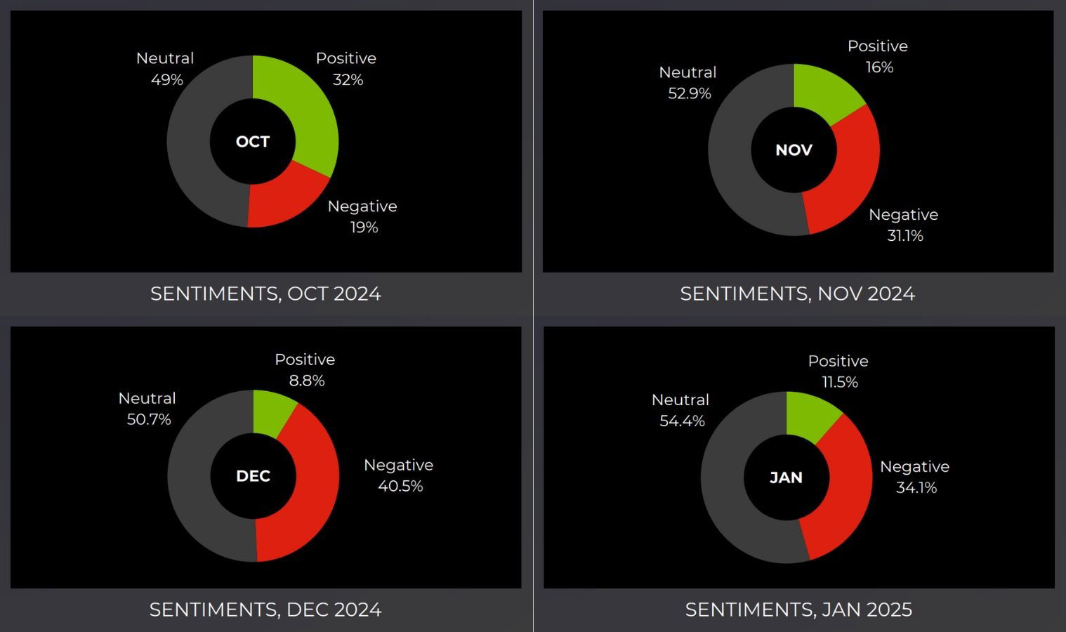 An analysis by CARMA of social media conversations from 20 October 2024 to 27 January 2025 reveals that online discussions started with neutral sentiment in October, as the public processed Prabowo's inauguration.