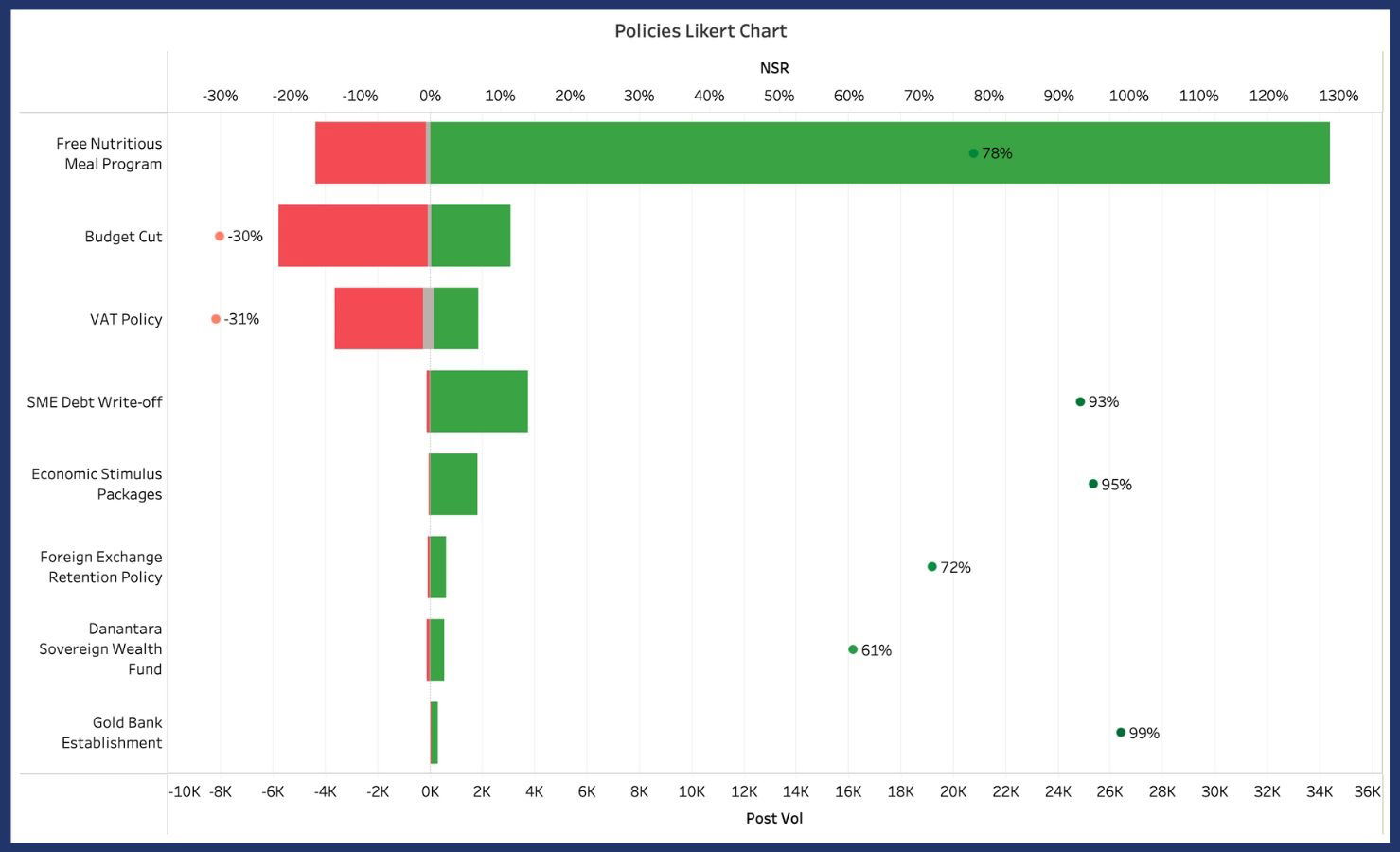 Meanwhile, another report by Tocanan details Prabowo's early economic policies, some praised, others controversial. His SME debt write-off - up to IDR 500 million (US$30,500) for businesses and IDR 300 million (US$18,300) for individuals - was widely lauded, especially in Eastern Indonesia, as a major poverty relief measure. Instagram sentiment was 75% positive, with users sharing success stories.
