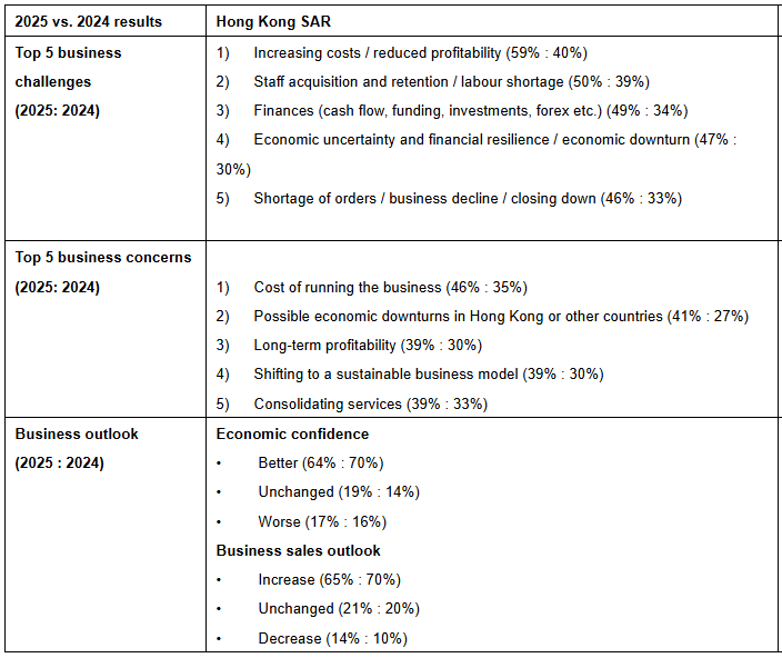 "Despite today's difficult conditions, businesses are rising to the challenge. Over the past few years, Hong Kong SMEs have become more resilient to the myriad of challenges ahead of them, and continue to roll out measures designed to meet these. Three-quarters of Hong Kong SMEs have taken cost control measures, while 45% of respondents have streamlined their operations, and 42% have diversified their offerings. We believe these actions underscore the ability of local businesses to respond and adapt," Fung added.