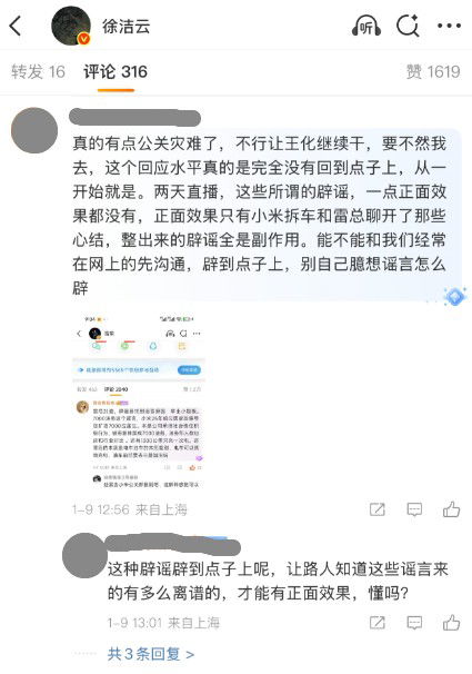 The crisis escalated on 5 January when the influencer claimed in a group chat that "Xiaomi funded me" (小米投了我). This assertion drew significant public attention, prompting Xiaomi's loyal "Mi Fans" to flood the Weibo accounts of executives Xu Fei and Xu Jieyun with protests, accusing the company of betraying its users.